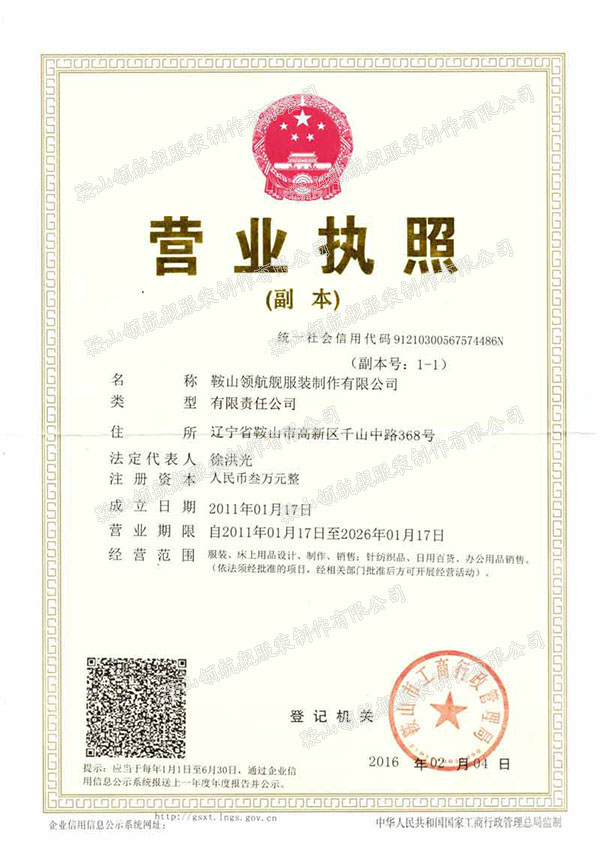 鞍山領(lǐng)航職業(yè)服裝定制有限公司是一家專業(yè)從事銀行職業(yè)裝定制,企事業(yè)單位工服定做,工作服定做,學(xué)校等單位服裝設(shè)計(jì)、制做為一體的鞍山服裝廠。經(jīng)過數(shù)年的發(fā)展,公司具備了服裝開發(fā)、服裝造型設(shè)計(jì)、服裝專 業(yè)定做、服裝銷售售后一條龍服務(wù),并輔以電腦服裝設(shè)計(jì)、服裝制圖、服飾打版。